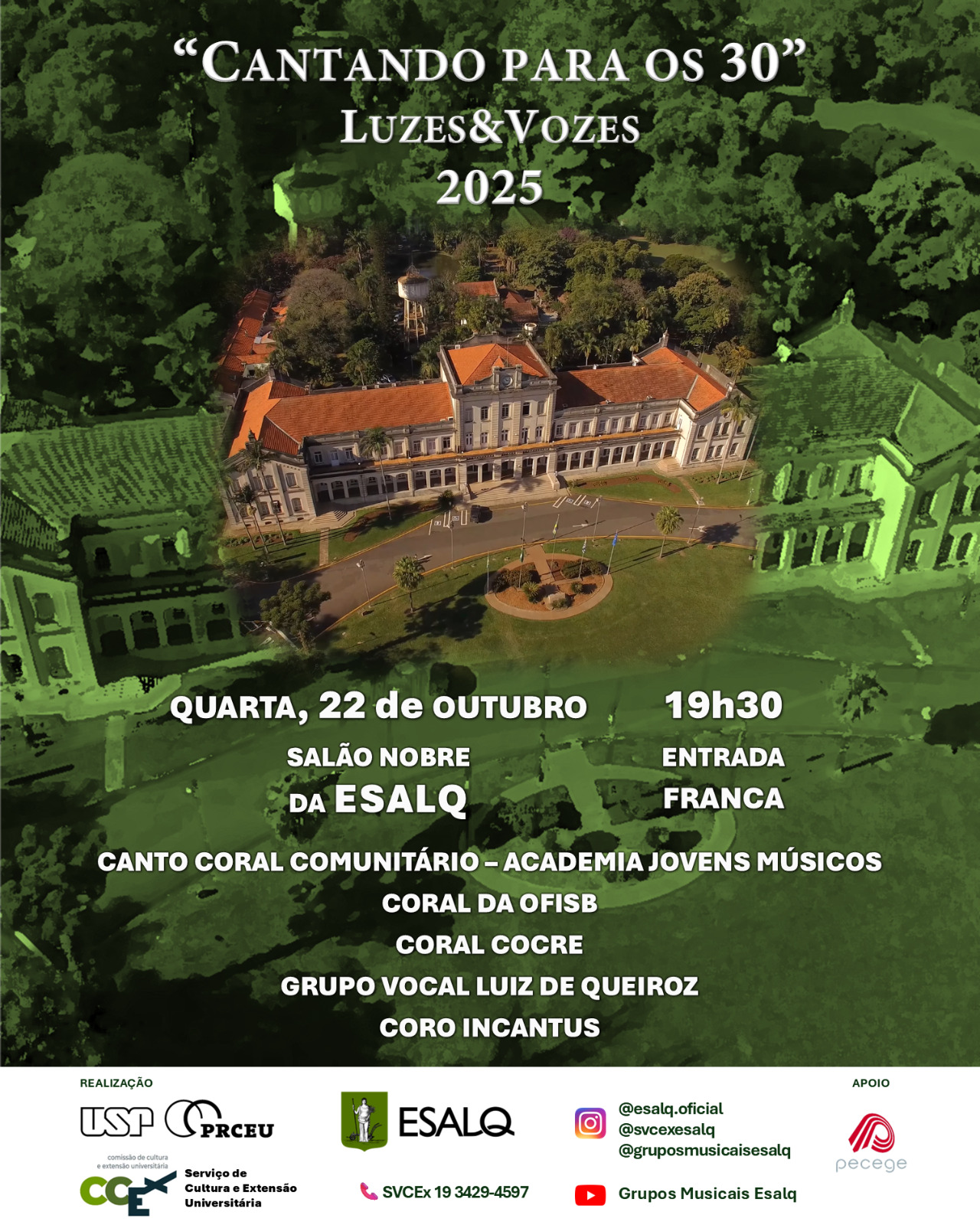 O coral Luiz de Queiroz conta com 84 integrantes, entre alunos e funcionários da ESALQ e pessoas da comunidade.